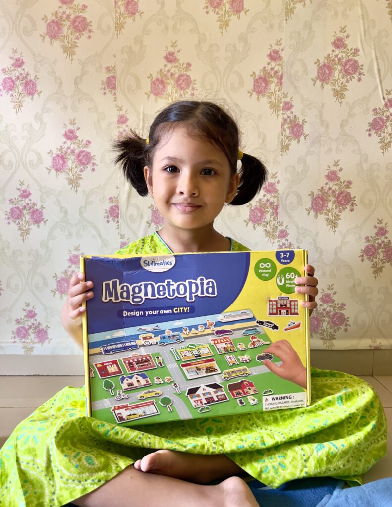 I love to see my child hooked to Magnetopia for hours. Designed for children aged 3-7 years, the “Create Your Own City” game invites kids to construct their dream city using over 60 magnetic pieces. This toy opens the door to imaginative play, giving children full control over how they build and design their urban landscapes.